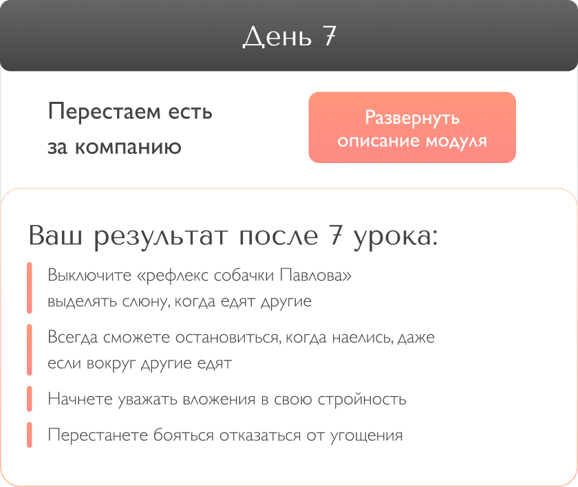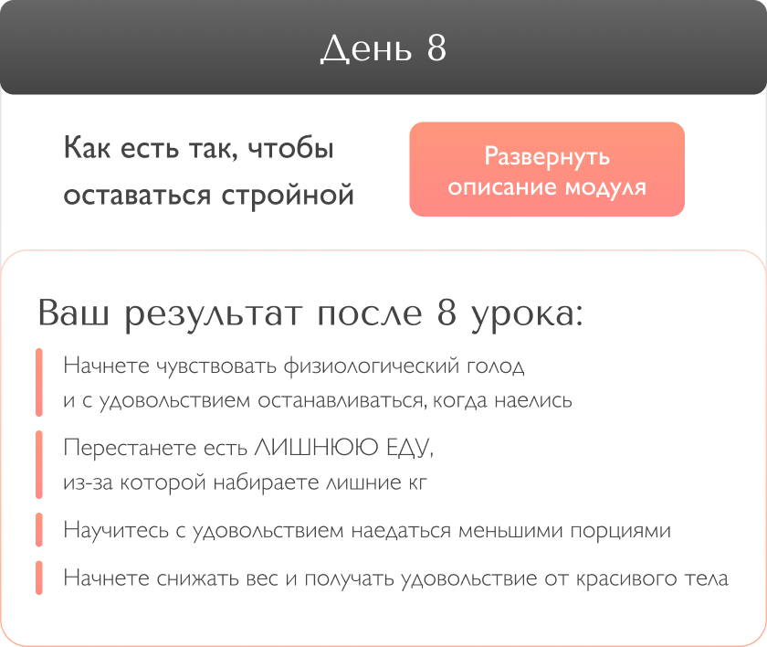 При помощи “мозгоритма” я научу вас включать центр насыщения так, чтобы он начал работать корректно и давать сигнал, что вы наелись, гораздо раньше, чем обычно.